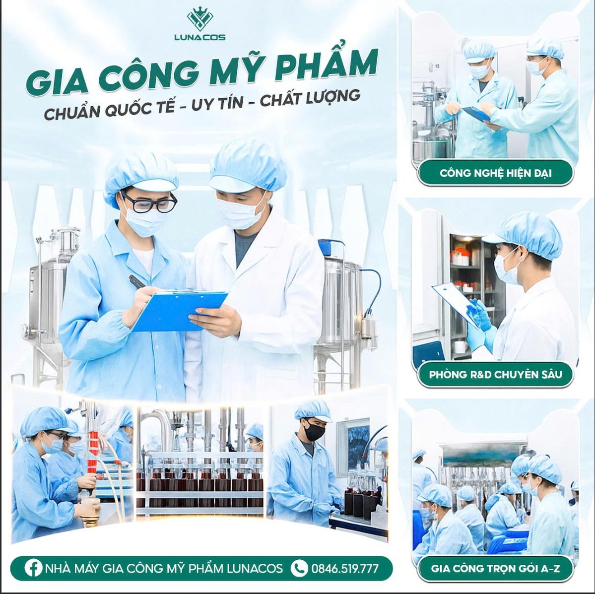 Nhà máy gia công mỹ phẩm LUNAGROUP đạt chứng nhận cGMP, ISO, FDA, Vegan… dây chuyền sản xuất hiện đại, thiết bị máy móc sản xuất mỹ phẩm mới nhất. Đáp ứng nhu cầu sản xuất để xuất khẩu cho các thị trường cao cấp. Đồng thời, giúp khách hàng phần nào tiết kiệm được các chi phí sản xuất, giảm giá thành xuống thấp mà vẫn đảm bảo chất lượng tốt nhất.